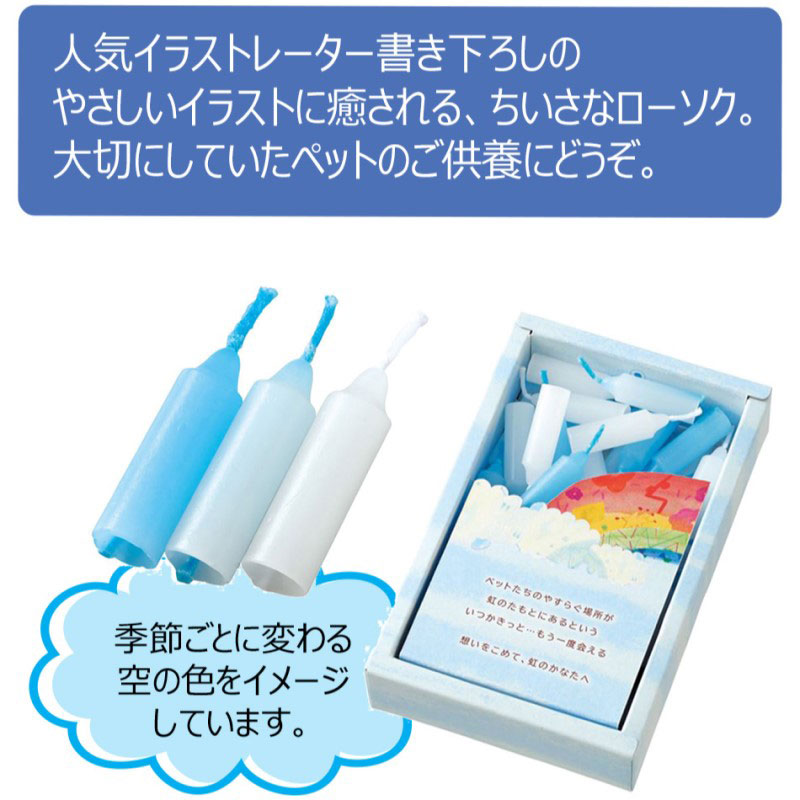 たくさんの人をペットロスから救ってきた『虹の橋』という物語をもとに生まれたペットローソクです。