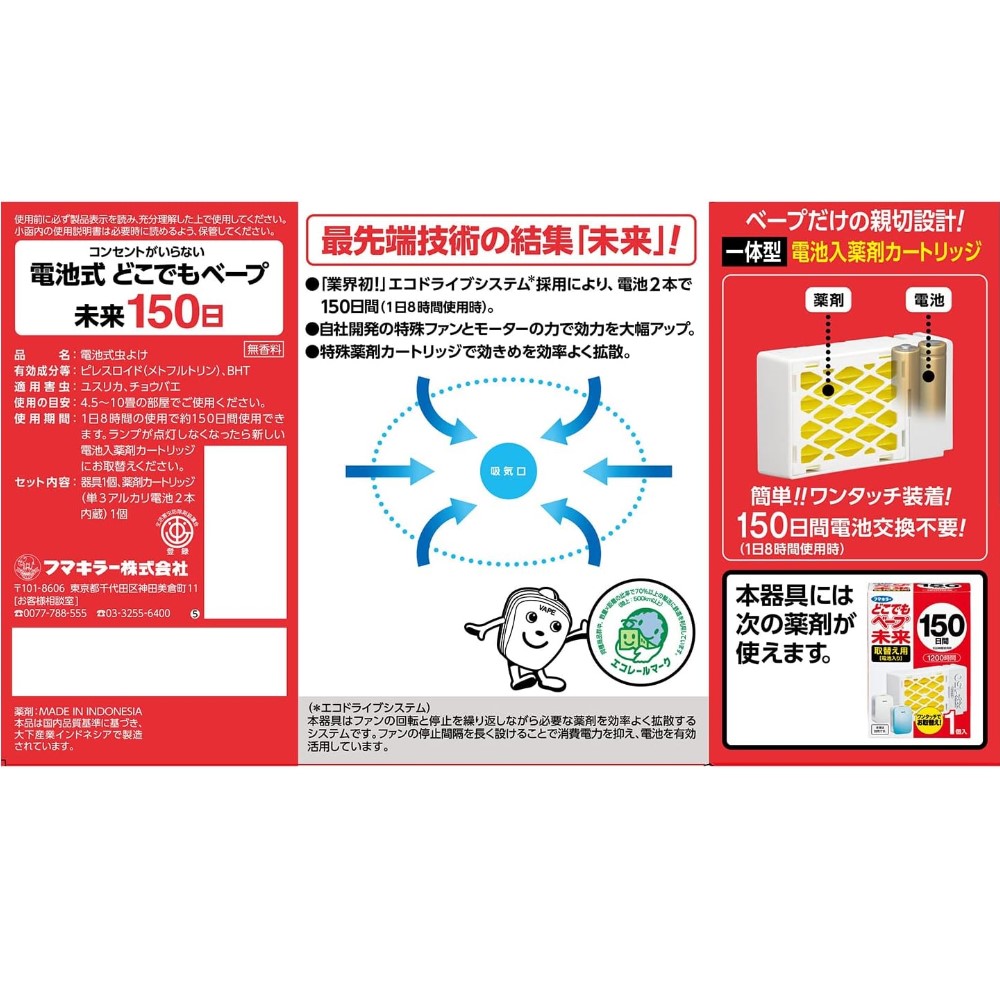 150日間※、電池・薬剤の交換の必要がありません。※1日8時間使用時