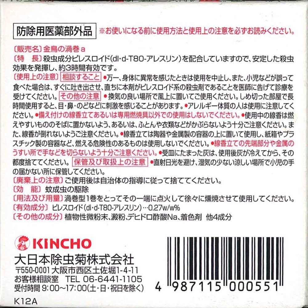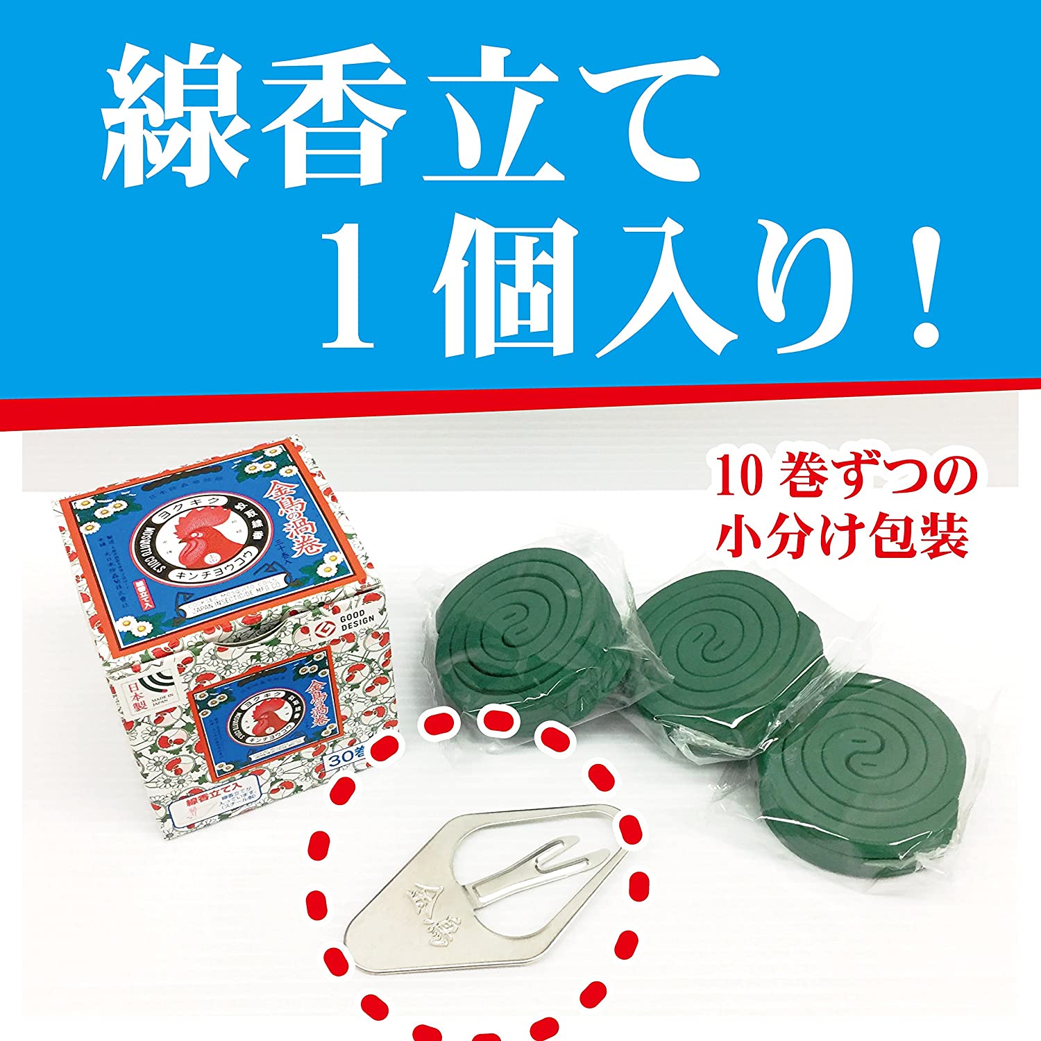※渦巻はかならず1巻ずつはずしてから点火し、ご使用ください。<線香渦巻のはずし方>線香渦巻の中心を軽く上下に押して、中心を上下からつまみ、まっすぐ引いて2巻にはずしてください。<線香渦巻の火のつけ方>渦巻1巻の先端(1カ所)を下向きに点火し、点火後は炎を消して徐々に燻焼させてください。<線香立てのセットのしかた>「金鳥」の文字が正しく見える方を上にして線香立ての爪の中ほどを引き上げてください。<線香渦巻の立て方>点火した線香を、引き上げた爪に水平に差し込んでください。